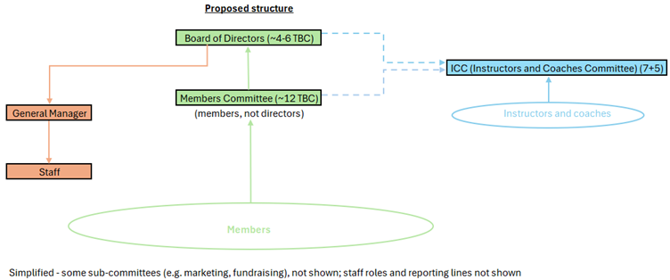 - Separating the Board from the Members Committee will allow us to focus on recruiting people to the Board with key skills to help the Club operate safely and sustainably.